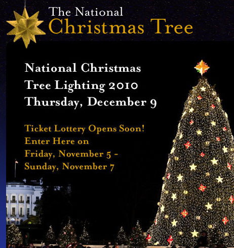 For those of you in the DC Metro area, don't forget that the online lottery for tickets to the Tree Lighting Ceremony on the National Mall opens this Friday at 12:01am! It goes until Saturday. The tree lighting will take place on Thursday, December 9.